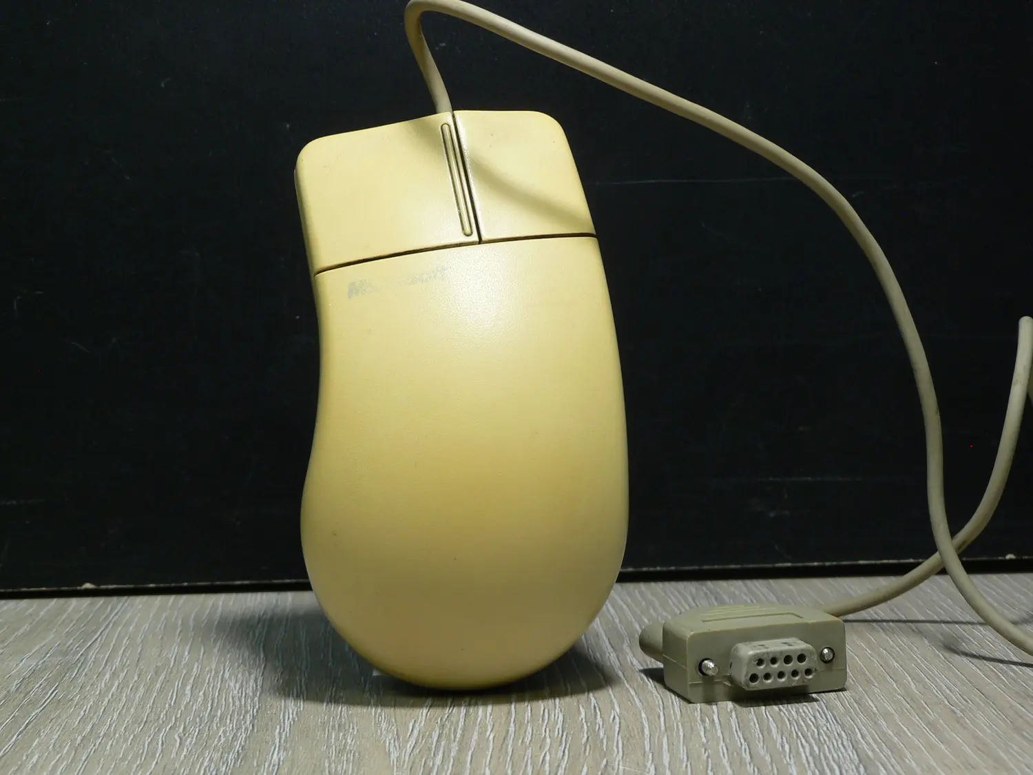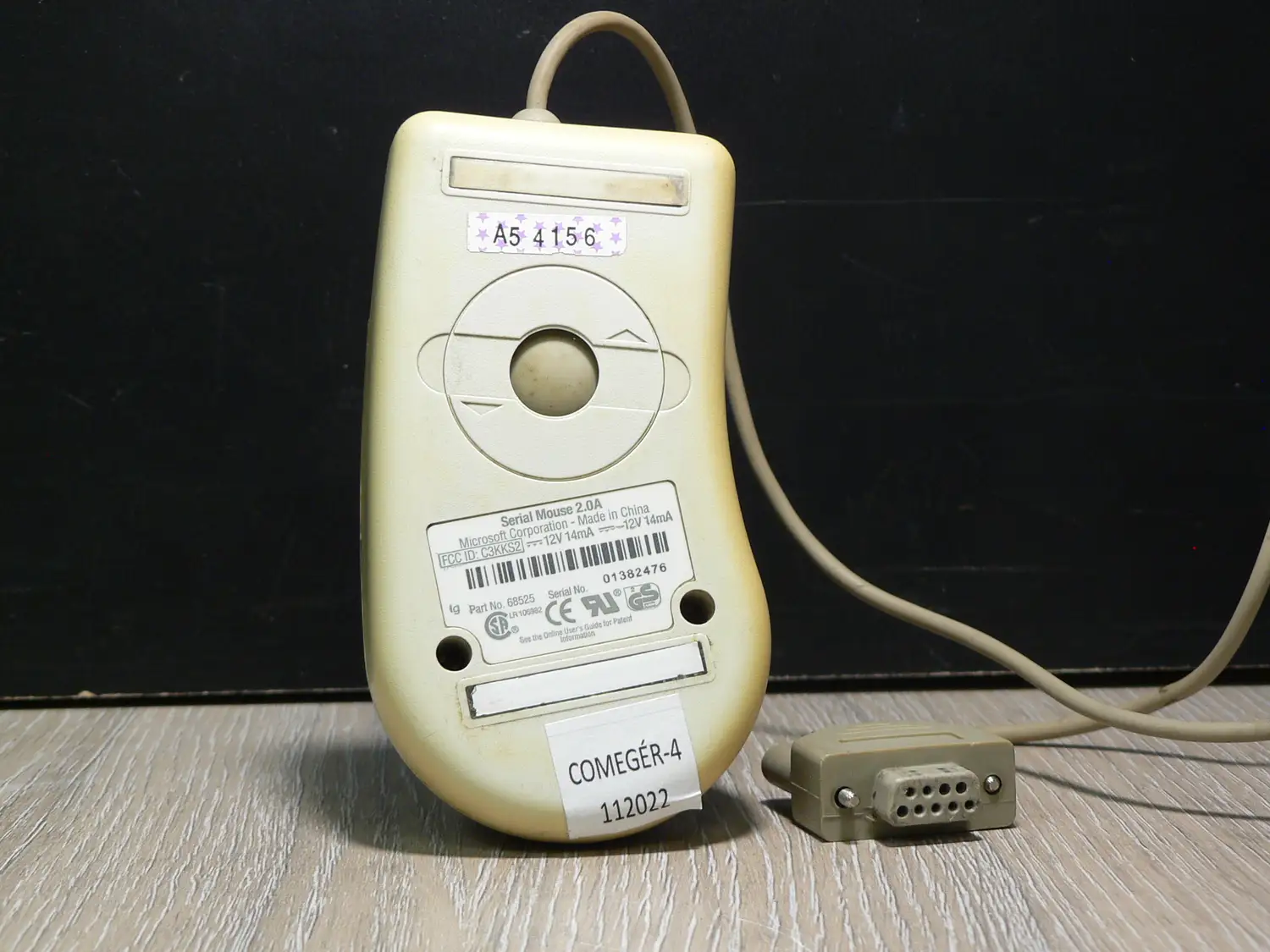 Klasszikus Microsoft mechanikus egér soros interfésszel, a korai PC korszak meghatározó perifériája.